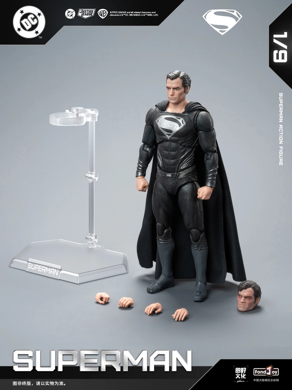 La figura Black Superman 2.0 de Fondjoy representa una versión oscura y estilizada del mítico superhéroe de la casa DC. Fabricada en escala 1/9, esta figura de acción trabaja un diseño alternativo —piel del traje oscura con detalles contrastados, acabados trabajados y una presencia imponente— ideal para coleccionistas que buscan piezas distintas del merchandising habitual.